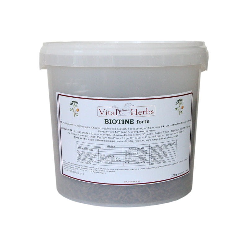 Biotine forte to w 100% naturalny preparat w formie peletek z zawartością miedzi i cynku, które zapewniają większe wchłanianie biotyny. Niezbędny preparat w przypadkach kruchych, łamliwych, pękających kopyt - pozbawionych elastyczności. W przypadku chorób skórnych, matowej sierści, dla koni które wycierają sierść.