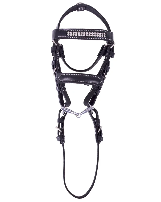 Dekoracyjna mini uprząż Madelon, która może służyć np. jako brelok. Naczółek ma dwa rzędy małych srebrnych cyrkonii.