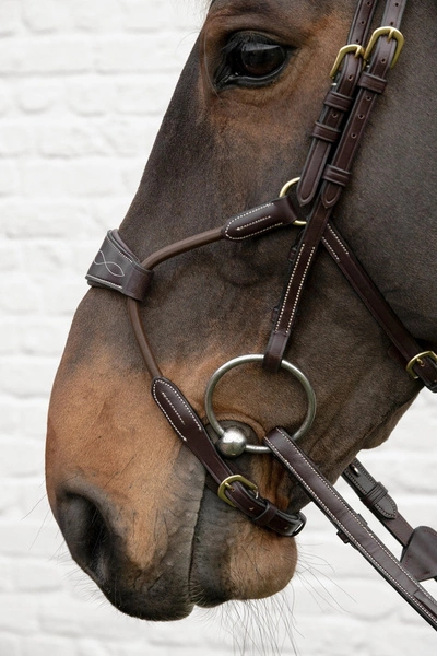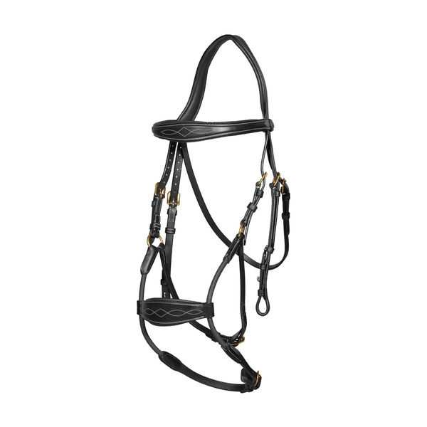 Wykonane z wysokiej jakości skóry Dy’on, ogłowie jest trwałe, elastyczne i estetyczne. Ergonomiczny nagłówek z miękką wyściółką minimalizuje nacisk w okolicach potylicy i uszu, co zapewnia komfort podczas treningów i zawodów.