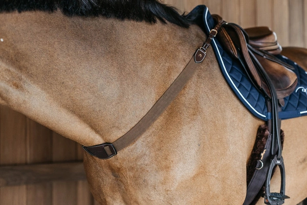 Elastyczny napierśnik Dy’on D Collection to funkcjonalny element uprzęży, który zapewnia stabilizację siodła i jednocześnie gwarantuje maksymalny komfort konia podczas jazdy. Dzięki zastosowaniu elastycznych wstawek napierśnik dopasowuje się do ruchów konia, nie ograniczając pracy barków i łopatek.