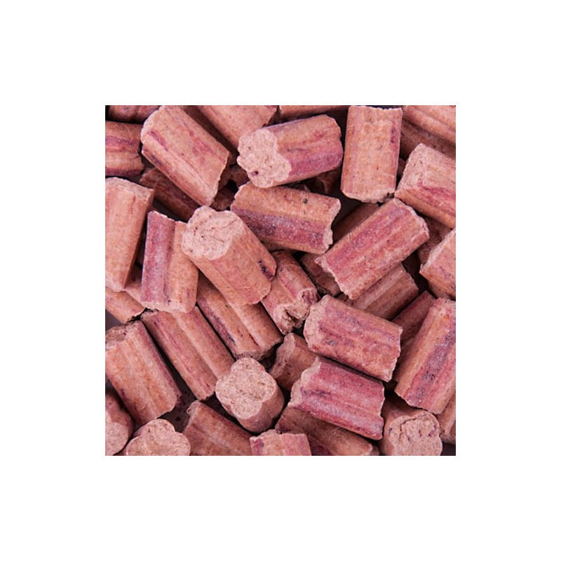 mąka pszenna, kukurydza inkrustowana, gluten paszowy kukurydziany, burak ćwikłowy 4%, węglan wapnia, chlorek sodu, skrobia ziemniaczana, wytłoki z czarnej aroni 0,1%, czarny bez 0,1%