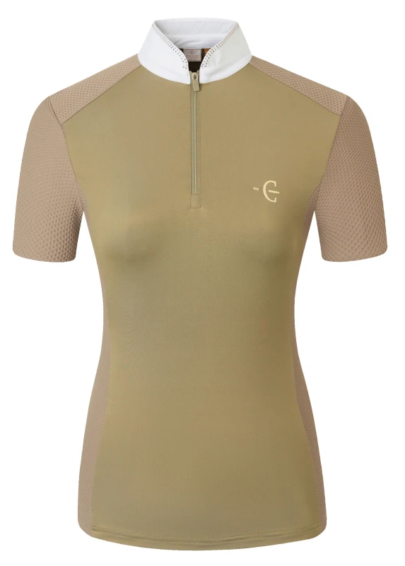 Nasza koszulka konkursowa łączy sportową wydajność ze stylowym designem. Oddychający, elastyczny materiał zapewnia optymalny komfort noszenia i maksymalną swobodę ruchów w siodle. Dopasowany krój podkreśla sylwetkę, a elegancki, stójkowy kołnierz z subtelnymi aplikacjami z brokatu dodaje odrobinę uroku.