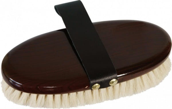 - szczotka z naturalnej, miękkiej koziej sierści o długości 2,5 cm, połączonej z drewnem imitującym mahoń