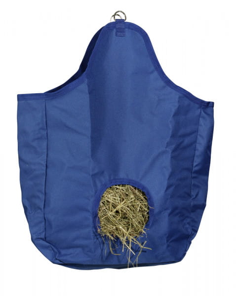 Torba na siano, wyposażona w dwa oczka do zawieszania oraz otwór do skarmiania siana. Wymiary 49 cm x 17 cm x 70 cm.