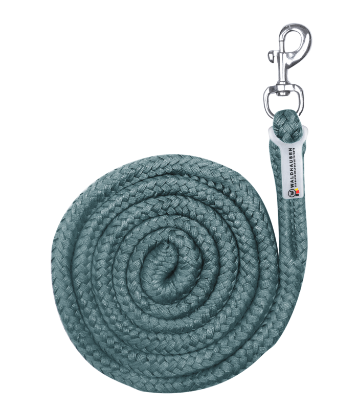 Dobra lina uwiązowana, wyposażona w błyszczący karabinek.