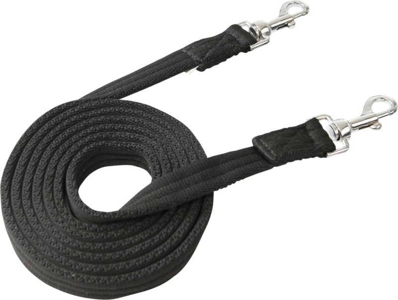 Wyściełane wodze z poliestru, mocowanie do wędzidła za pomocą obrotowego karabińczyka z satynowego cynku.