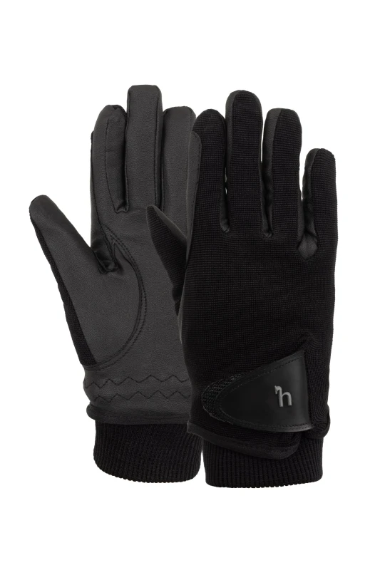 Podszyte miękkim polarem rękawiczki to idealny wybór dla dzieci jeżdżących konno w niskich temperaturach. Mocna zewnętrzna tkanina jest odporna na wodę i wiatr. Wewnętrzna część dłoni wykończona skórą zapewnia bezpieczeństwo podczas trzymania wodzy.